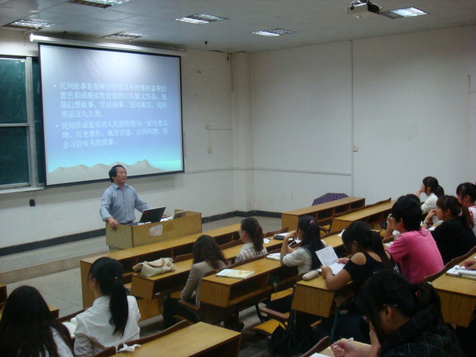 刘宗彬首先谈到民间传说的内涵、价值及影响,接着讲述了吉安各地很多有名的故事传说,如文天祥募兵勤王骑竹马、糯米秀才罗隐金口玉牙、净居寺井中出木、石牛寺贪心和尚挖盐洞、凤凰圩头戴铁帽马骑人等等,最后指出民间传说有丰富的文化内涵,是非物质文化遗产的重要组成部分,希望同学们勇挑重担,收集整理好各地的民间传说。